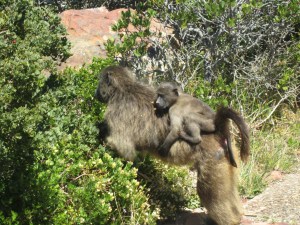 Today we’re going on a tour to Cape of Good Hope, alleged to be the most southern point of Africa. I say alleged because the first thing our tour guide, Faried,  explains to us is that it turns out that it’s not the most southern point of Africa. It’s the most South West point so we’ll go with that. Faried is a coloured. (Apparently its politically correct to continue to refer to people as white, coloured or black, in fact there is some pride in being so identified.) Faried takes us on a very touristy trip today. No history lesson today except to remind you that the Cape of Good Hope was that pointy bit on the map that all those Europeans had to figure out how to get around to get to those spices in India. Did you ever wonder what the big deal was about? Spices! Really, would you jump on a ship and risk your life for a little bit of curry? Actually, I might. Anyway, views galore, pictures of water, overpriced tourist lunch etc. etc. etc. However, here’s the exciting part (irony) We’re going to Simon’s Bay to see the penguin colony. Yes, penguins. Remember in Cape Town, the South Pole is in your sights, so to speak. And what is the South Pole famous for? Penguins. Some of them have migrated to Africa and here some of them reside. Claire has never seen a penguin and she is mighty excited. So off we go, we look at them, they look at us and its over just like that. We come to Africa for a safari and so we’ve seen a bunch of penguins.